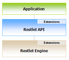 The Restlet Framework is composed of two main parts. First, there is the Restlet API, a neutral API supporting the concepts of REST and HTTP, facilitating the handling of calls for both client-side and server-side applications. This API is backed by the Restlet Engine and both are now shipped in a single JAR (“org.restlet.jar”).